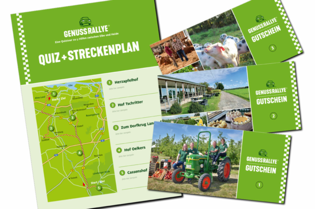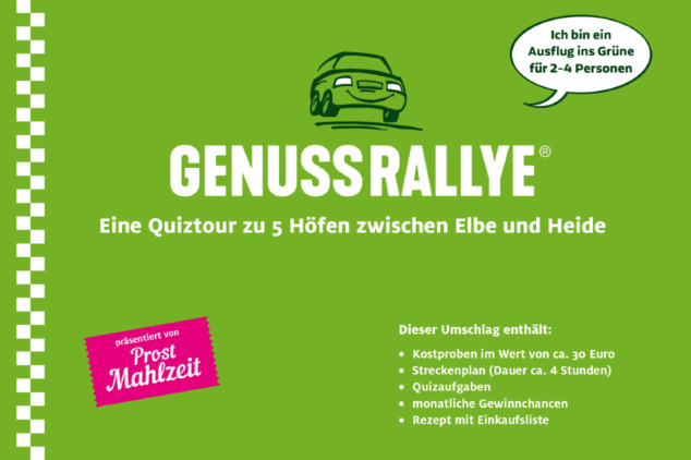 Wir haben aus einer leckeren Landpartie, kniffligen Aufgaben und Kochspaß für alle ein kurzweiliges Unterhaltungsprogramm gemacht. Bei der Genussrallye handelt es sich um eine Quiztour zu 5 Höfen zwischen Elbe und Heide. Sie fahren mit dem eigenen PKW ohne Voranmeldung an einem Tag nach Wahl und bestimmen nicht nur das Tempo, sondern auch die Fahrtrichtung Süden oder Norden.